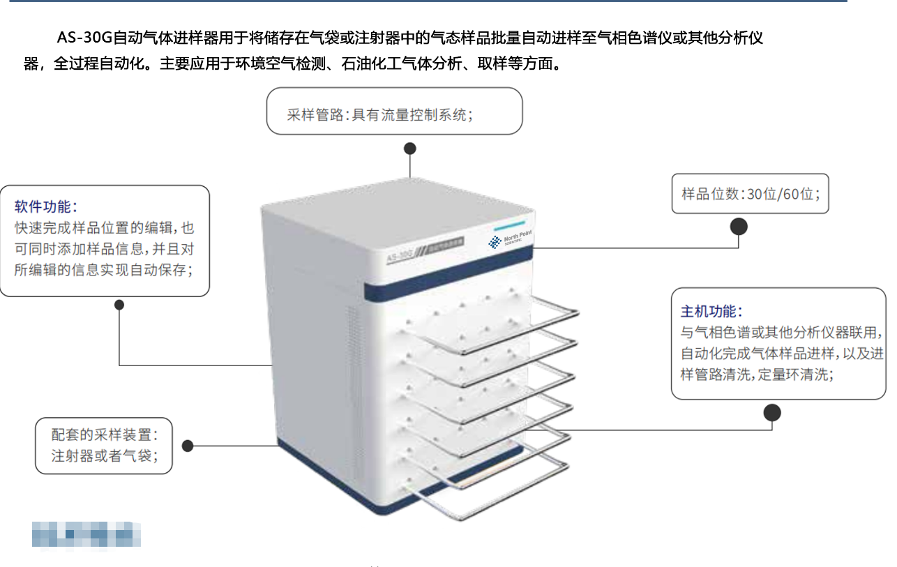 AS-30G自動氣體進樣器用于將儲存在氣袋或注射器中的氣態(tài)樣品批量自動進樣至氣相色譜儀或其他分析儀器,全過程自動化。主要應用于環(huán)境空氣檢測、石油化工氣體分析、取樣等方面。